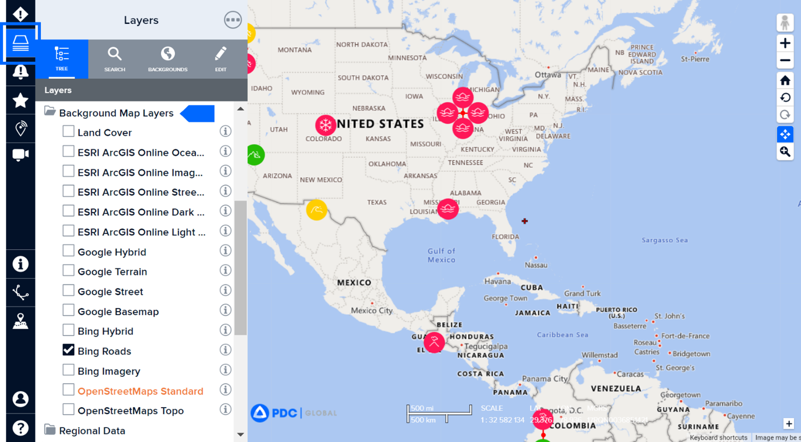 DisasterAWARE comes with a variety of background maps that you can choose from. Below are just a few examples.