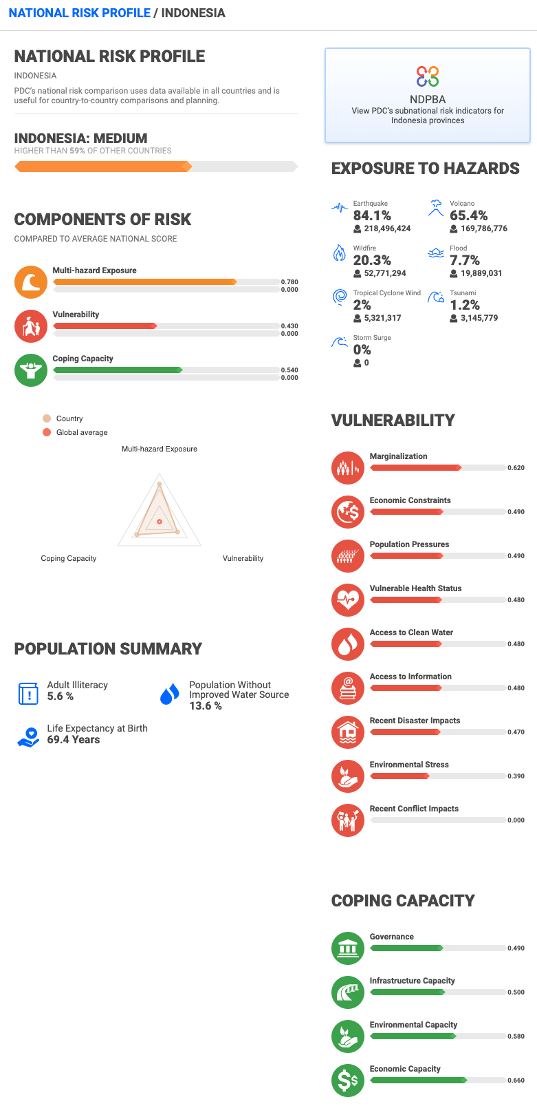 Event Brief offers subnational risk information for select countries, with subnational risk data for approximately 20% of the globe. This information is provided exclusively through PDC’s National Disaster Preparedness and Baseline Assessment (NDPBA) program.